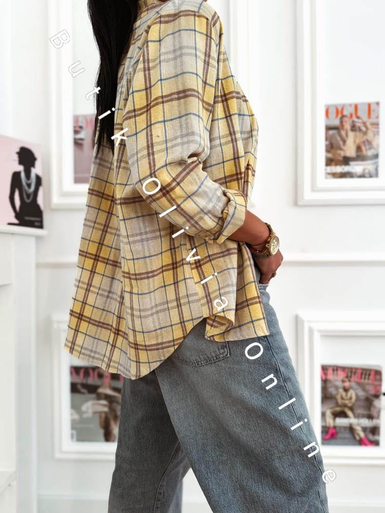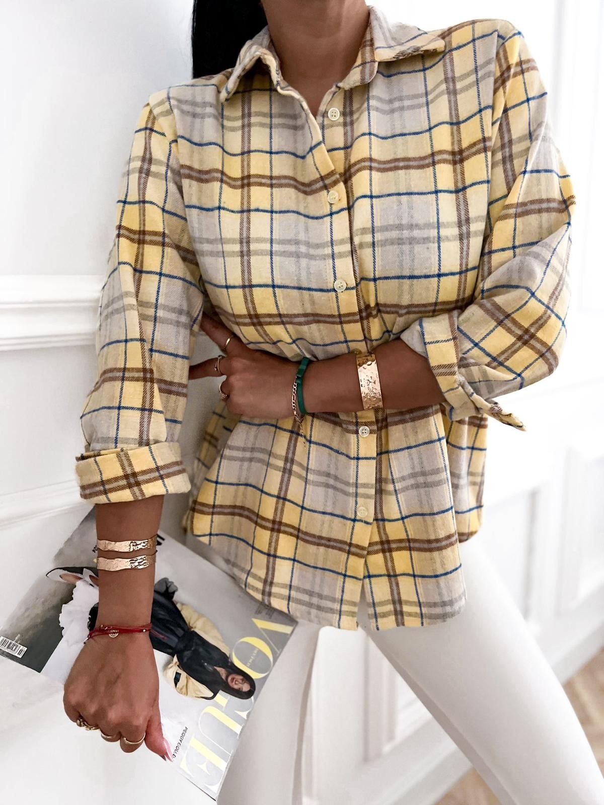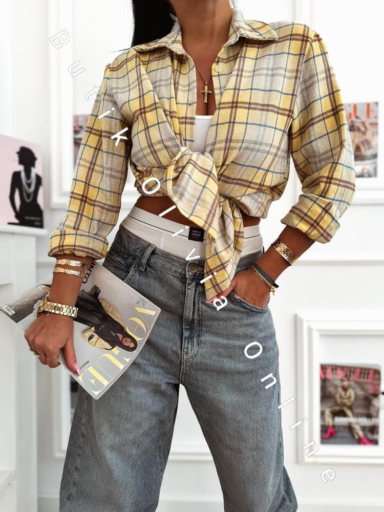 Damen-Karobluse SPRING – Zitronengelb