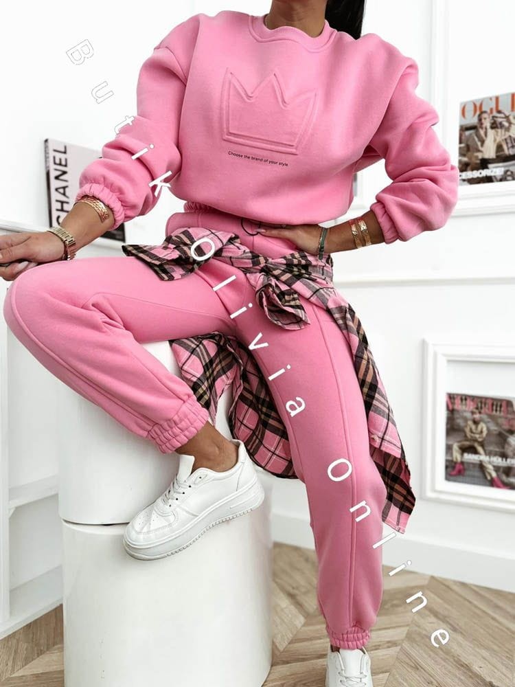 Dieses rosa Loungewear-Set ist die ideale Wahl für Frauen, die Wärme, Komfort und modischen Stil in einem Look vereinen möchten. Von innen weich gefüttert, angenehm auf der Haut und perfekt für kühlere Tage – ohne dabei auf einen trendbewussten Auftritt zu verzichten. Die feminine Roséfarbe sorgt für Frische und Leichtigkeit, während die geprägte Krone dem Set eine exklusive, stilvolle Note verleiht.