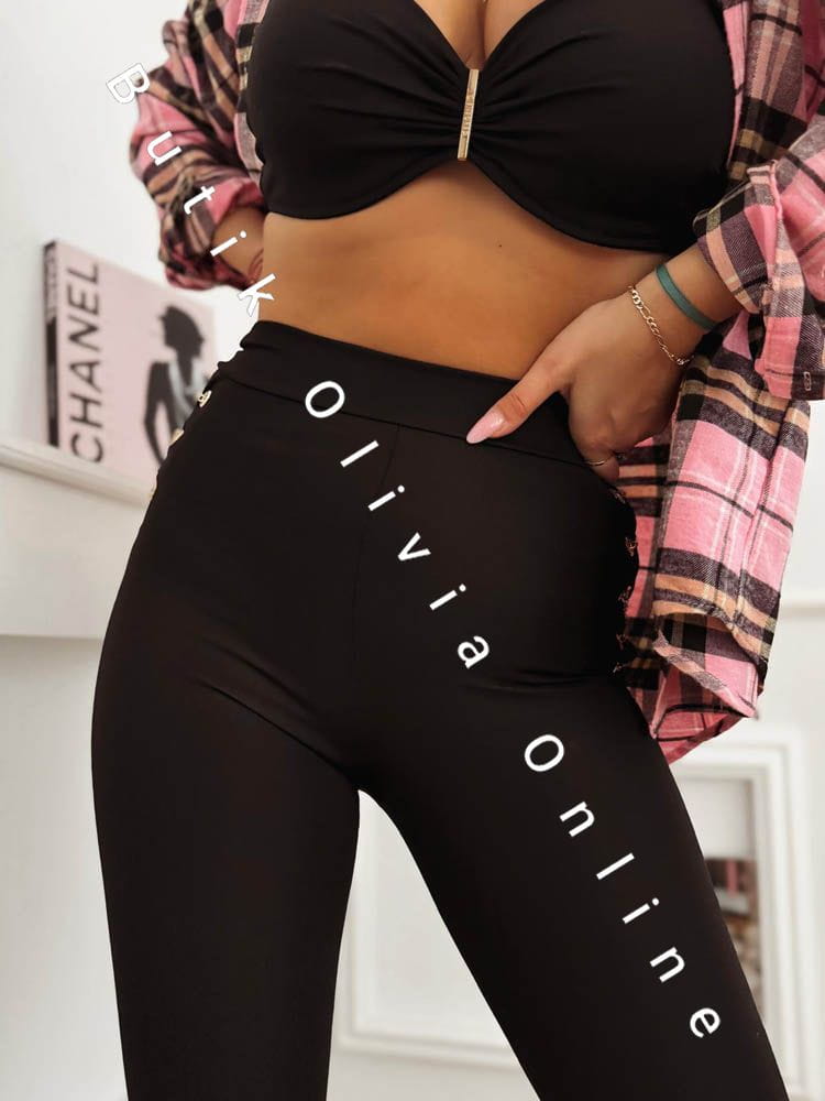 Diese schwarzen Leggings sind ein modernes Basic mit besonderem Twist. Der klassische, eng anliegende Schnitt betont Beine und Silhouette, während der hohe Bund die Taille formt und für optimalen Halt sorgt. Das absolute Highlight sind die goldenen Ketten an den Seiten – ein schmuckartiges Detail, das jedes Outfit sofort aufwertet, selbst in Kombination mit einem schlichten Top oder einer karierten Bluse. Das Material ist elastisch, angenehm auf der Haut und passt sich perfekt dem Körper an. Diese Leggings eignen sich sowohl für den Alltag als auch für den Abend: Sneakers für einen lässigen Look, Stiefeletten oder High Heels für den Wow-Effekt.